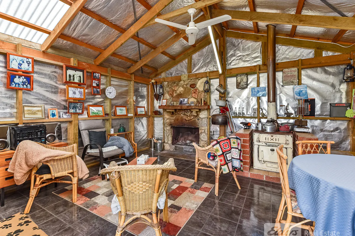 Adjacent to the pergola is a fully lined and insulated glamping retreat, complete with tiled flooring, lighting, power, roll-down blinds, open fireplace and a Metters wood oven - ideal weekend getaways at home or chilling out with family & friends.