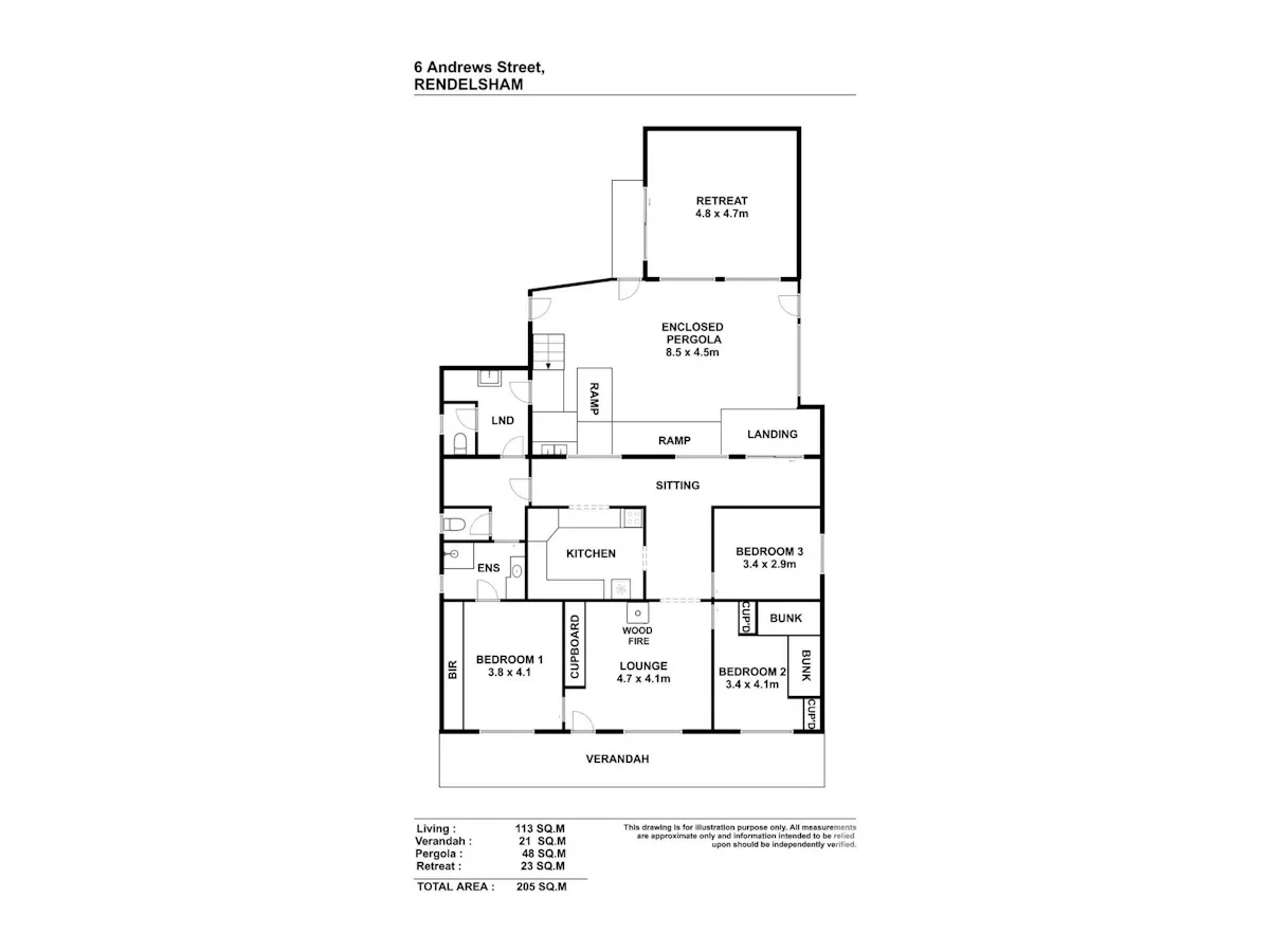 The timber-framed rendered home features aluminium windows, a charming bullnose front veranda and rear ramp access from the pergola into the sunroom/sitting area.